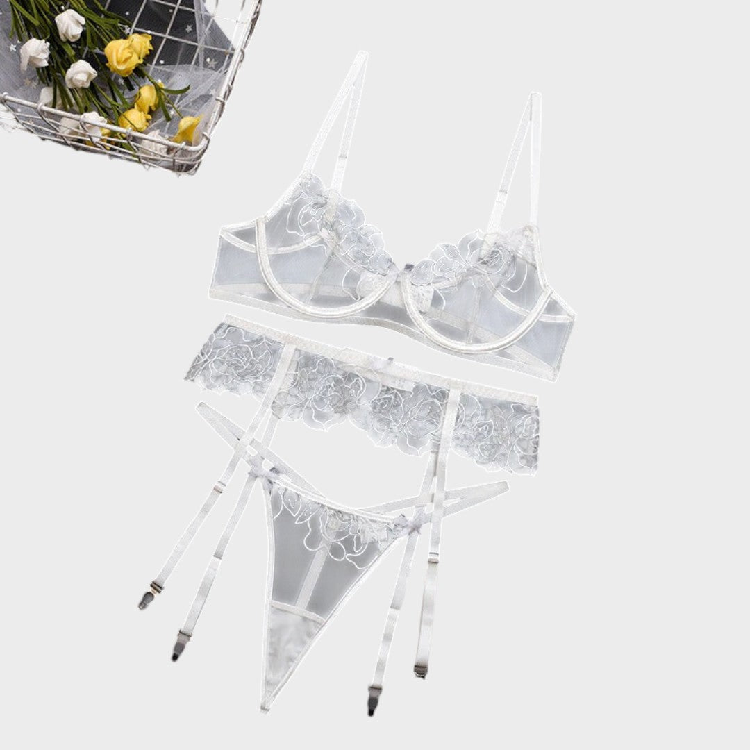 גלה את אביבה | סט תחתונים, סט תלת חלקי נצחי ורומנטי, המציע לא רק תחתונים סקסיים, אלא גם נוחות וסגנון שאין להם תחליף. הסט הבלעדי הזה כולל חזייה מעוצבת באומנות, חוטיני מפתה ורצועה אלגנטית המדגישה בצורה מושלמת את הנשיות שלך.