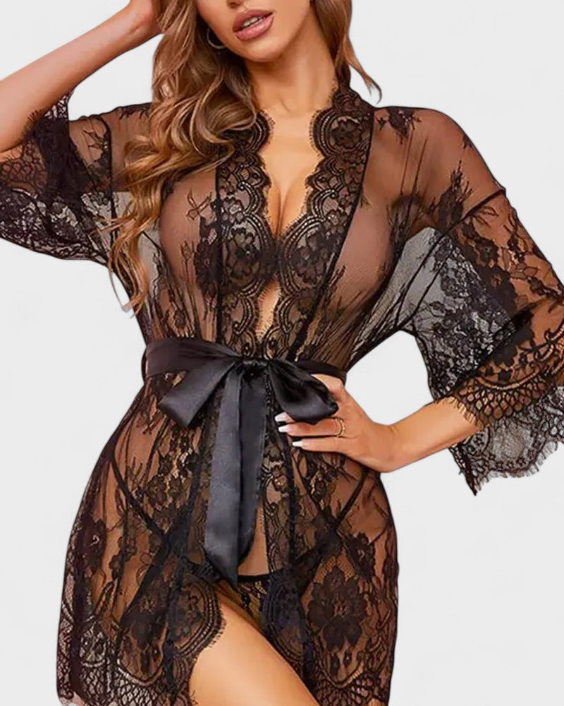 טינה | פיג'מת בלונדינית בהירה אלגנטית עם חגורת סטן